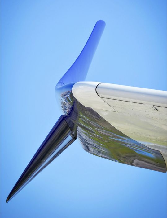 Cánh phi cao 15 feet, và thiết kế bao gồm phần mở rộng xuống thêm 4 feet. Chúng có thể cải thiện hiệu suất nhiên liệu lớn đến 4 phần trăm và—cùng với những cải tiến khác—giảm chi phí vận hành đến 13 phần trăm.