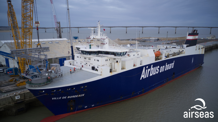The cargo ship is Airseas first customer.Tuần trước, công ty thông báo lắp đặt đầu tiên của Seawing trên một tàu thương mại. Airseas gần đây đã lắp đặt Seawing đầu tiên trên tàu vận chuyển Ville de Bordeaux, do Airbus thuê, sở hữu và vận hành bởi Louis Dreyfus Armaeurs.