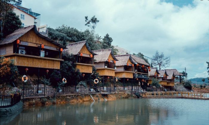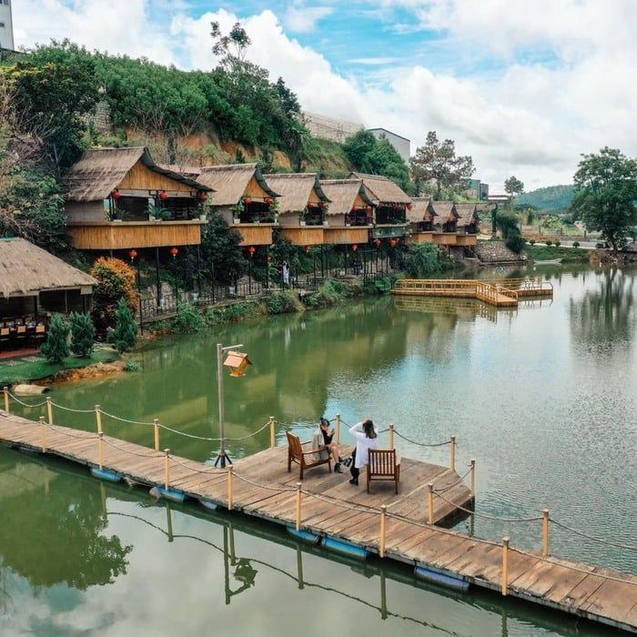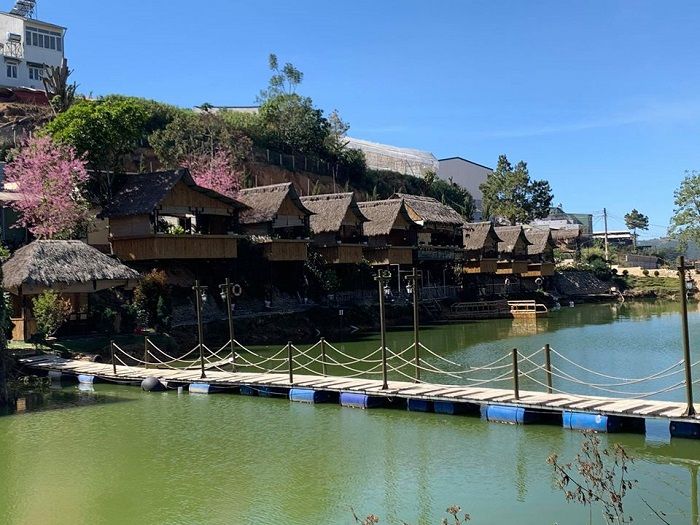 Hòa mình trong không gian thoáng đãng và yên bình khi ghé thăm An Sơn Hồ Đà Lạt, nơi bạn có cơ hội trải nghiệm miễn phí. Bên cạnh hồ nước trong xanh như tranh, những ngôi nhà gỗ tre mái thưa tạo nên bức tranh đẹp như “Phượng Hoàng Cổ Trấn” thu nhỏ. Một hình ảnh đẹp Đà Lạt độc đáo và lôi cuốn du khách vào sự huyền bí.