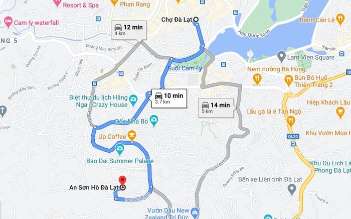 Bắt đầu từ chợ Đà Lạt, bạn có thể di chuyển theo đường Nguyễn Thị Minh Khai, rẽ trái tại đường Nguyễn Văn Cừ. Rồi rẽ vào đường Bà Triệu, tiếp đó rẽ trái vào đường Trần Phú.