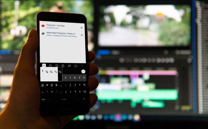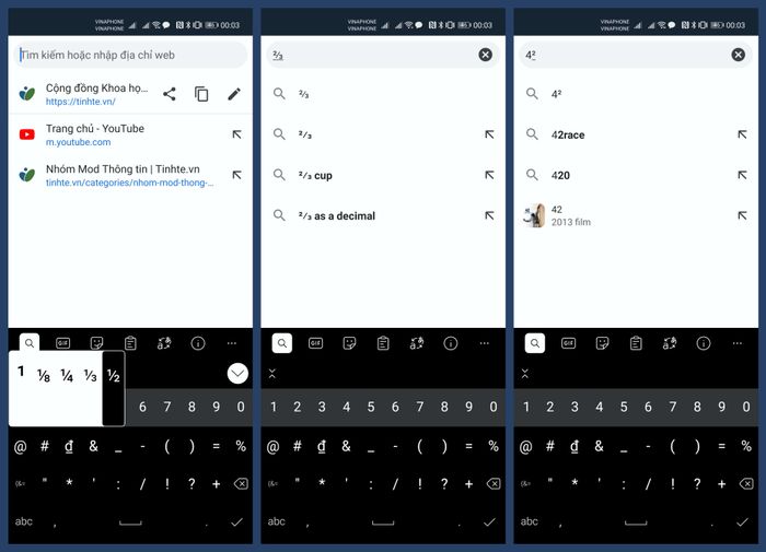 Để nhập phân số nhanh chóng, bạn không cần phải thực hiện 3 thao tác như truyền thống. Đơn giản chỉ cần bấm vào nút '123' ở góc dưới bên trên của bàn phím và ấn giữ số tử số mong muốn, ví dụ ấn giữ số 1 cho phân số 1/2. Sau đó bạn chỉ cần kéo qua là đã nhập được phân số một cách dễ dàng.