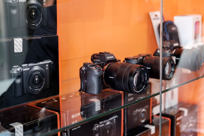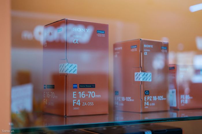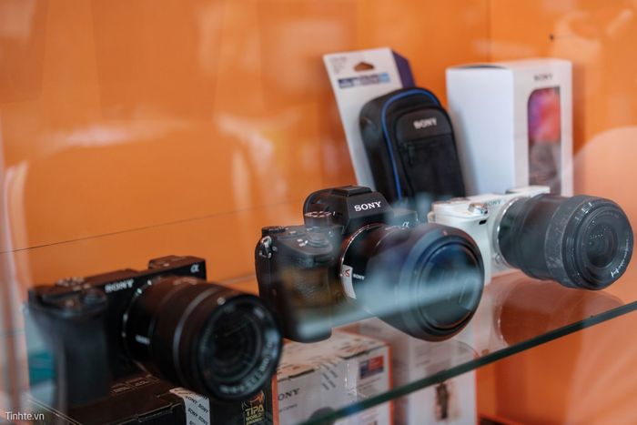 Góc trưng bày máy ảnh Sony Alpha cùng các ống kính phụ trợ.