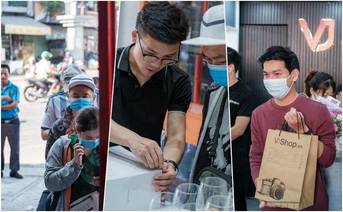 Sáng nay, từ sớm, đã có đám đông khách hàng xếp hàng trước cửa hàng VJSHOP tại địa chỉ 363 Hoàng Văn Thụ, Quận Tân Bình, TP.HCM để mua hàng với ưu đãi. Mình chỉ ghé qua một chút nhưng được nghe kể rằng trước đó hàng người xếp hàng rất dài, nhưng hiện tại đã giảm bớt đi.