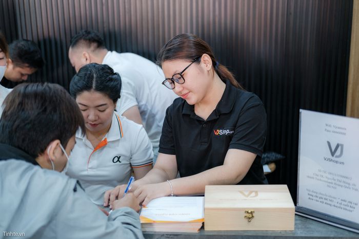 Có vẻ như cửa hàng VJ không cho phép quá nhiều khách hàng vào cùng một lúc, và các hoạt động như tư vấn, lựa chọn mua hàng, thanh toán diễn ra rất nhanh chóng và thuận tiện. Khách hàng cũng không phải đứng chật chội, chen lấn nhau.