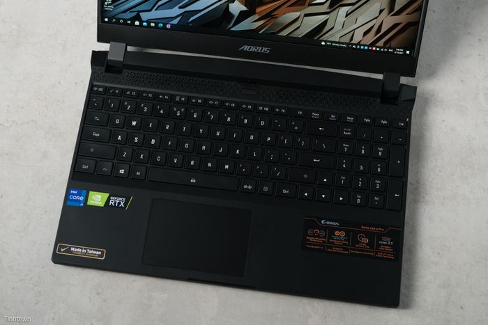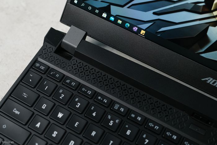Nội thất của AORUS vẫn giữ phong cách cầu kỳ nhưng không hấp dẫn. Mặc dù trên AORUS 15P, thiết kế này đã giảm bớt để trở nên dễ nhìn hơn. Phía trên bàn phím có một hàng lỗ được khoét theo mẫu hoa văn 'gạch bông'.