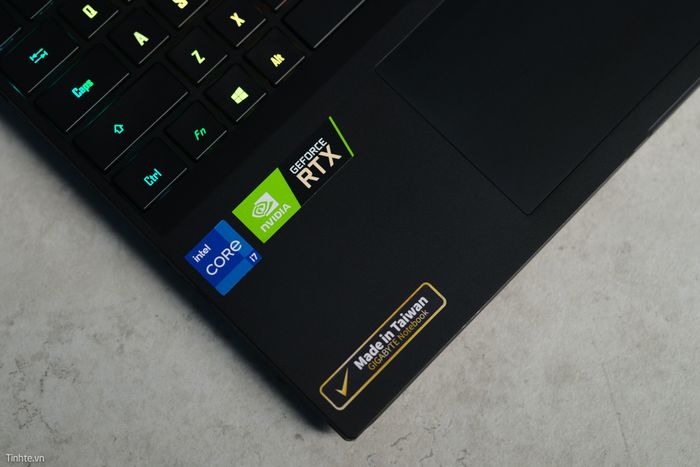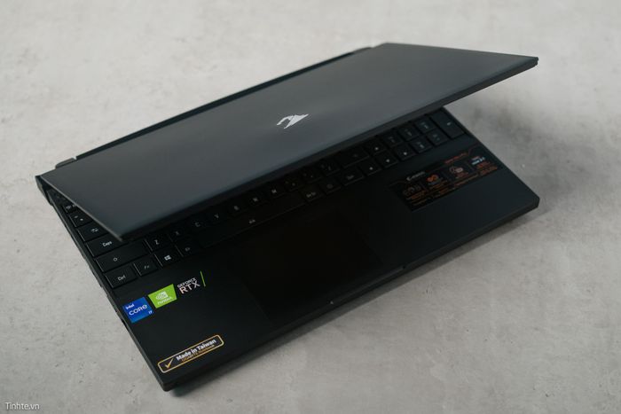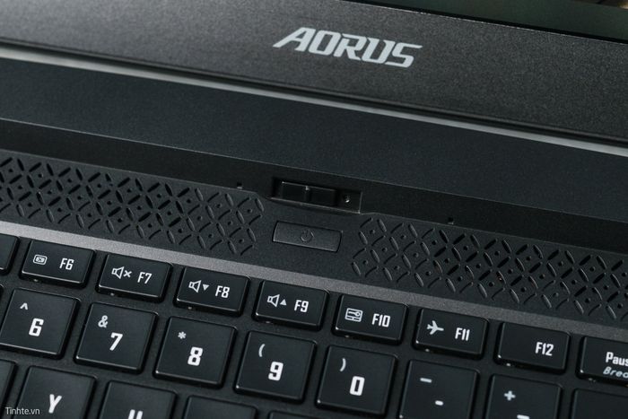 Ở vị trí này, có nút nguồn và một nút gạt - đây là nơi để mở hoặc đóng webcam trên AORUS 15P. Viền mỏng nhưng vẫn có webcam, không bị cắt bỏ như dòng Zephyrus G15 trước đó mình từng sử dụng, và còn có nắp che để tăng tính bảo mật - rất tuyệt vời từ GIGABYTE.Bàn phím và bàn rê