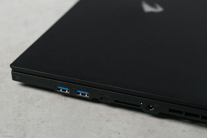 Ở cạnh phải, bạn sẽ tìm thấy jack cắm nguồn, cổng USB-C (Thunderbolt 4, hỗ trợ USB 4, trình xuất DisplayPort), 2 cổng USB-A (USB 3.2 Gen1 5 Gbps) và khe cắm thẻ SD UHS-II.