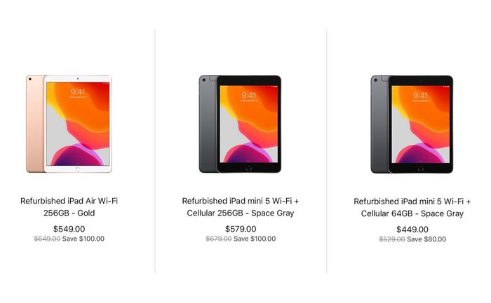 Apple vừa bắt đầu bán iPad Air 2019 (Air 3) và iPad mini 5 phiên bản đã được phục hồi lại - gọi là tái chế. Với mức giá hấp dẫn hơn, thấp hơn giá gốc khoảng 15%, bao gồm đủ các phiên bản từ 64 GB - 256 GB, cả Wi-Fi và Wi-Fi + Cellular và nhiều màu sắc.