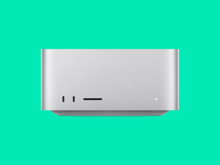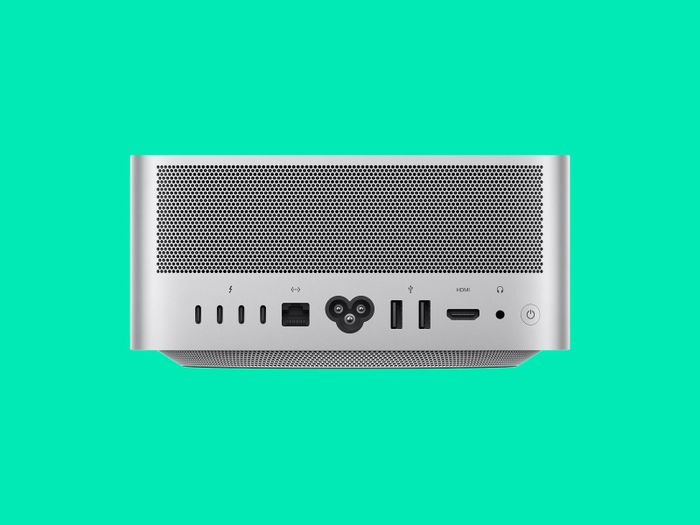 Có thể nói rằng Mac Studio giống như Mac Mini được tăng cường năng lực, với nhiều tính năng hơn cả bên trong lẫn bên ngoài. Nhìn chung, nó trông giống như máy tính đồng bộ không có màn hình của Apple—với hình dạng giống hình hộp vuông cao 3.7 inch và đo khoảng 8 inch mỗi cạnh. Vì vậy, nó gọn nhẹ đủ để đặt trên bàn làm việc hoặc dưới một màn hình. Nó cũng tích hợp nhiều cổng, bao gồm hai cổng USB-C và khe thẻ SD ở phía trước, cùng với bốn cổng Thunderbolt, hai khe USB-A, một cổng HDMI, một cổng Ethernet 10 GB và một jack tai nghe ở phía sau.