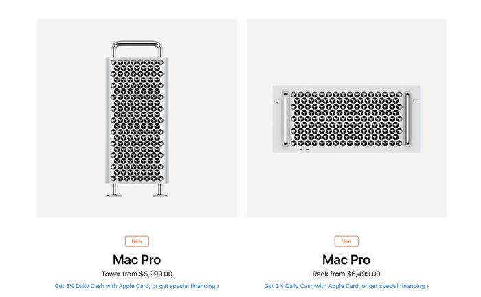 Apple vừa công bố Mac Pro dạng Rack-mounted và đắt hơn 500 USD so với Mac Pro dạng tháp thông thường (Tower). Mac Pro dạng rack được thiết kế dành cho các doanh nghiệp hoặc công ty lớn muốn xây dựng một hệ thống máy chủ mạnh mẽ về hiệu suất và mạng lưới kết nối rộng lớn. Nó được gắn trên các khung tủ và nằm ngang, việc tháo ra để bảo trì hoặc sửa chữa cũng đơn giản hơn và phù hợp với nhu cầu khác biệt so với Mac Pro tháp thông thường. Sự chênh lệch giá 500 USD là do Mac Pro Rack-mounted sử dụng bộ khung bên trong khác biệt, có phần bản lề để dễ dàng mở ra và đóng lại. Ngoài ra, phiên bản này không có tùy chọn 4 bánh xe trị giá 400 USD. Về cấu hình, cả Mac Pro rack và tower đều có cấu hình cơ bản giống nhau, bao gồm:- 3.5GHz 8 nhân Intel Xeon W, Turbo Boost lên đến 4.0GHz