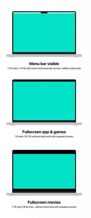 Anh em có thể thấy trong hình minh hoạ là khi ở chế độ sử dụng bình thường thì phần notch sẽ nằm trong thanh menu bar và tỉ lệ không gian hiển thị nội dung lúc này là 14:9. Khi mở app hay game fullscreen thì hệ thống sẽ thêm một đường viền màu đen vào phía trên của màn hình để ẩn phần notch, không can thiệp vào nội dung của người dùng và tỉ lệ không gian hiển thị nội dung lúc này là 16:10 tương tự như các thế hệ MacBook trước đó. Các nhà phát triển có thể chọn để hiển thị thêm nội dung ứng dụng ở 2 bên tai thỏ của notch, đó là phần không gian tăng thêm mà Apple nói.Ý kiến của anh em như thế nào về lời giải thích này?Theo: MacRumors