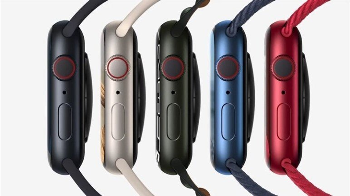 - Dòng Apple Watch Series 7 với vỏ nhôm hiện có 5 tùy chọn màu: Đỏ đậm, Vàng nhạt, Xám midnight, Xanh dương và Xanh lục.