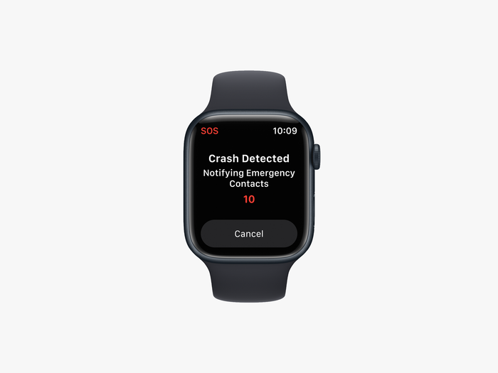 Trong trường hợp tai nạn giao thông nặng, Apple Watch của bạn (Series 8, Ultra và SE thế hệ thứ hai) sẽ gọi điện thoại cho dịch vụ khẩn cấp trên iPhone của bạn nếu bạn không kiểm tra trên đồng hồ sau 10 giây. Vị trí của bạn sau đó được chia sẻ với cả nhà phản ứng khẩn cấp và liên lạc khẩn cấp. Ngoài barometer và GPS, Apple đã tích hợp một cảm biến gyroscope, accelerometer và thuật toán sensor-fusion tiên tiến—được tạo ra bằng dữ liệu từ phòng thí nghiệm thử nghiệm va chạm—vào đồng hồ thông minh mới của mình để hỗ trợ tính năng này.