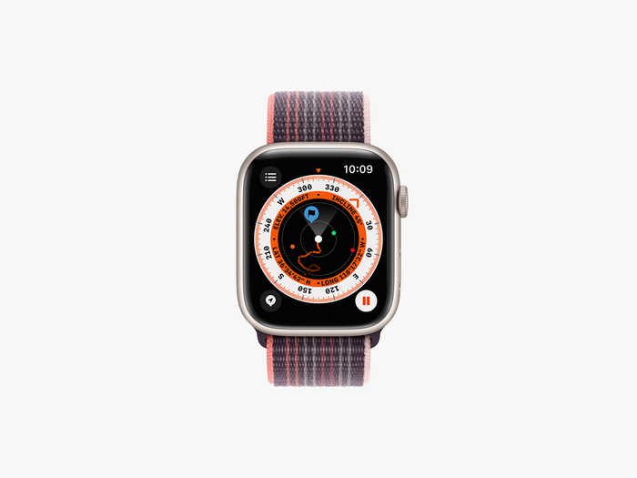 Ứng dụng Compass được thiết kế lại có một chế độ xem la bàn kết hợp mới, bao gồm cả la bàn analog đơn giản hiển thị hướng và góc, cùng với một la bàn số mới. Quay Crown sẽ hiển thị thông tin điều hướng liên quan, như vĩ độ, kinh độ, độ cao, và góc nghiêng. Nó cũng bao gồm các tính năng thăm dò mới, như Waypoints và Backtrack. Nhấn vào biểu tượng Waypoint để đặt một điểm quan trọng. Backtrack sử dụng dữ liệu GPS để hiển thị đường dẫn đã đi của người dùng nếu họ trở nên lạc hướng và cần quay lại.