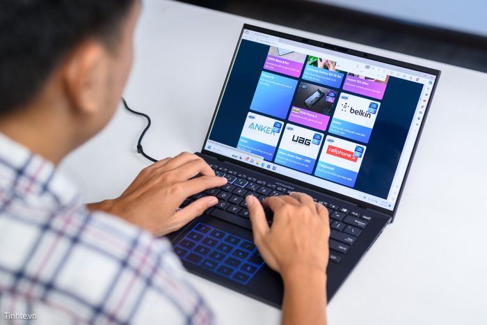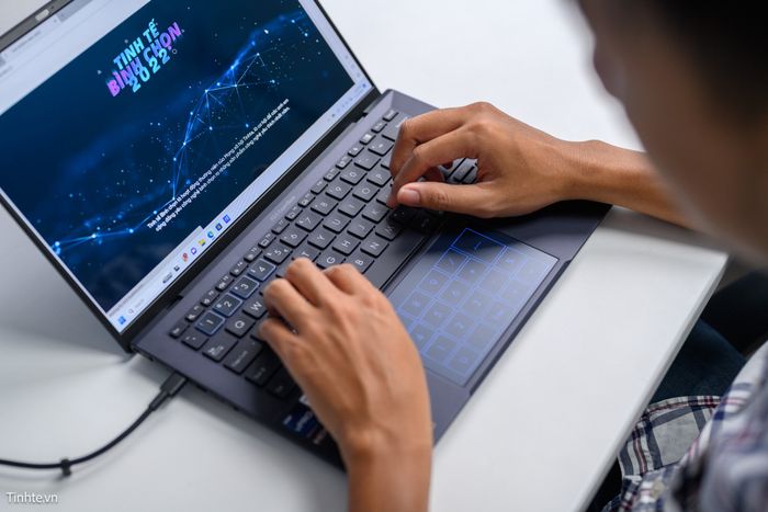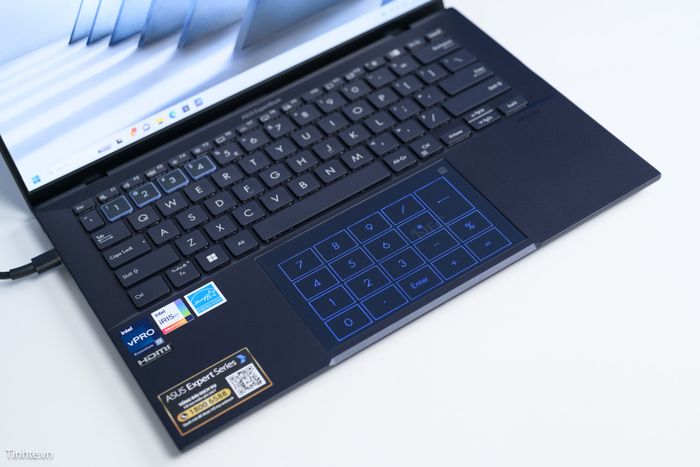 Clickpad trên ASUS ExpertBook B9 OLED được mở rộng thêm 26%, tích hợp NFC và phần numpad để nhập liệu chữ số. Diện tích mở rộng giúp việc nhập liệu trở nên dễ dàng hơn, thậm chí có thể sử dụng được cho cả hai tay.