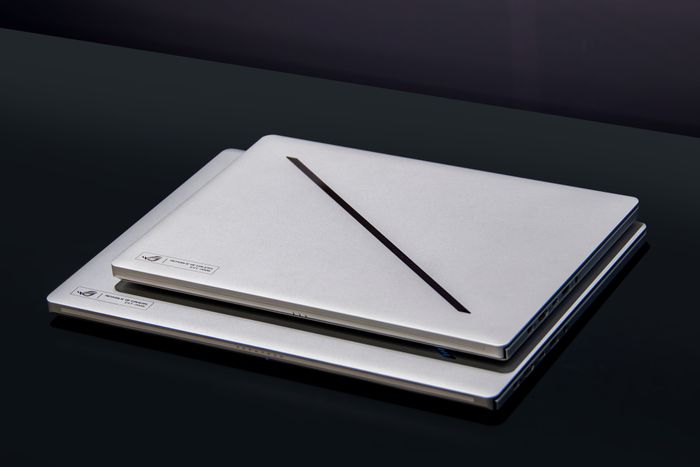Thay vì sử dụng thiết kế đèn MiniLED ANiMe Matrix và đục lỗ, ROG Zephyrus G14 và G16 chọn lựa thiết kế tối giản với phần mặt trước hoàn toàn phẳng. Điểm nhấn là dải đèn Slash Lightning đặt chéo, tạo nên sự mới lạ và hấp dẫn.