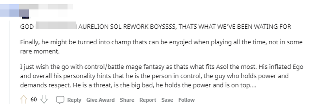 Trong tương lai, nếu Aurelion Sol được làm lại một cách hiệu quả như Urgot, Sion hay Dr. Mundo, có thể vị tướng này sẽ trở lại trong LMHT sau thời gian dài bị lãng quên. Tuy nhiên, nếu ngược lại, có khả năng Aurelion Sol sẽ tiếp tục nằm trong danh sách những vị tướng ít được chú ý như trong thời gian qua.