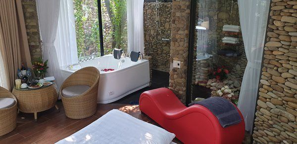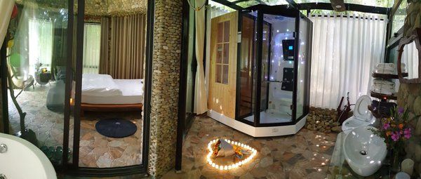 Là một trong những bungalow cao cấp nhất tại Babylon House, Lạc Tiên đưa đôi lứa vào không gian cổ tích, nơi hòa mình trong vẻ đẹp thần tiên. Với trang trí bằng lá cây, Lạc Tiên là điểm đến lý tưởng cho những khoảnh khắc lãng mạn và quý phái.