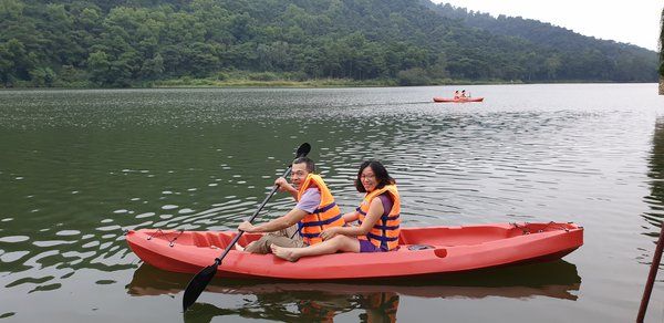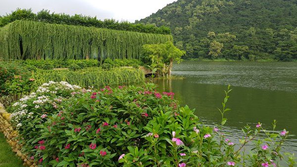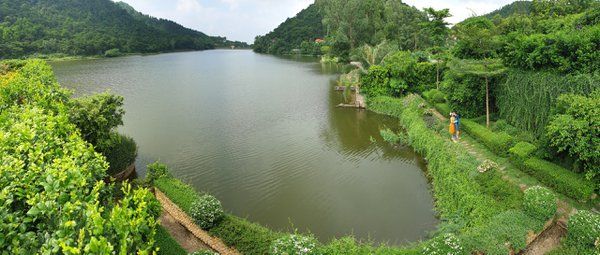 Bước ra khỏi phòng, du khách sẽ bắt gặp khu vườn lớn bao phủ bằng màu xanh tươi mát. Mỗi góc nhìn là bức tranh hòa quyện giữa núi, cỏ cây, và hồ nước phẳng lặng, tạo nên một bức canvas tự nhiên kỳ diệu.