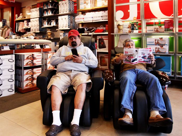 Khi bạn nghĩ đến Brookstone bây giờ, bạn nghĩ đến những chiếc ghế mát-xa của nó. Làm thế nào bạn có thể không? Đó là điều đã đưa bạn vào cửa, sau một giờ căng thẳng lang thang trong các khu vực của Borders và thấm đẫm trong nước hoa tại Abercrombie & Fitch. Brookstone mang đến một ốc đảo rung chuyển với hỗ trợ lưng ấm.
