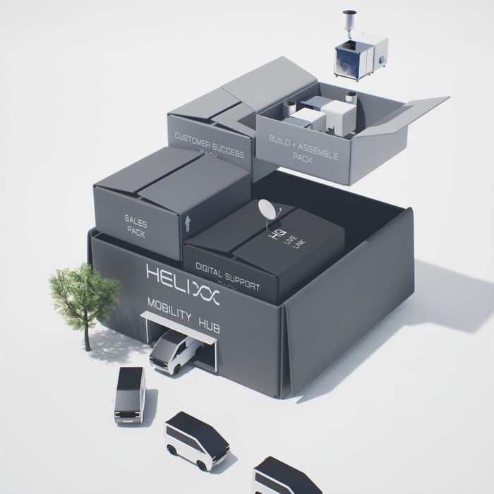 Đây là một bản thiết kế hứa hẹn kết quả nhanh chóng. Theo Helixx, hệ thống có thể biến một doanh nghiệp địa phương từ một tòa nhà trống thành các phương tiện hoàn chỉnh chỉ trong vòng 180 ngày.