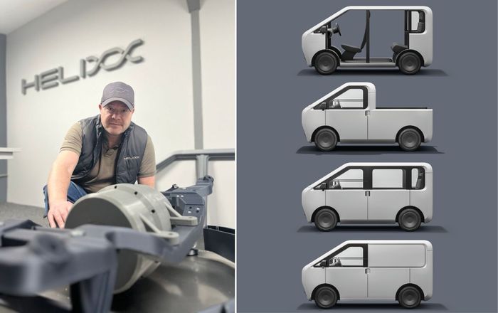 Helixx CEO Steve Pegg and the four concept Helixx vehicles. Top to bottom: the open-body TUK, the TRUCK pick-up, the closed-body RIDE, and the CARGO delivery van, which was stress-tested in the demonstrator. Credit: HelixxHelixx sử dụng công nghệ in 3D nội bộ để tạo ra các bộ phận thân xe. Tất cả các thành phần được số hóa. Chúng sẽ cung cấp cơ sở cho một hệ thống thân xe có thể tái chế nội bộ quy mô rộng, được coi là "đầu tiên trong ngành".