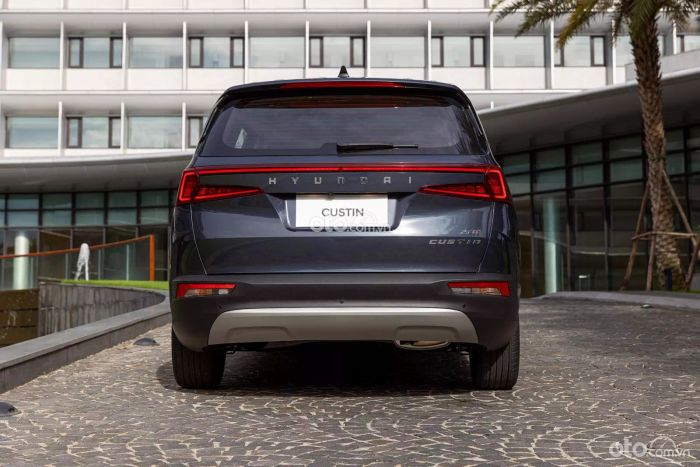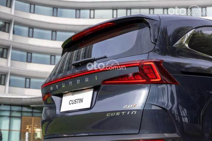Ở phía sau, Hyundai Custin nổi bật với cặp đèn hậu LED được nối liền nhau thông qua dải LED vắt ngang cửa cốp xe. Thay vì sử dụng biểu tượng logo của hãng, Custin sử dụng dòng chữ HYUNDAI - cách sắp xếp chữ giống như trên Genesis.
