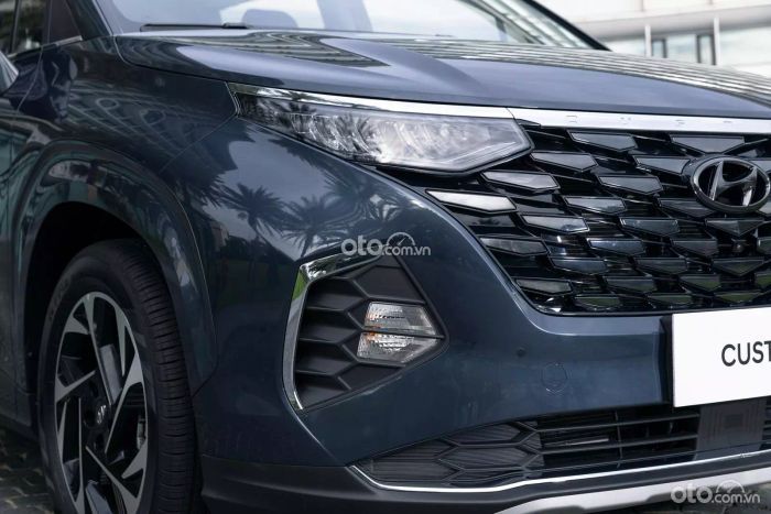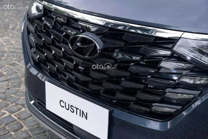 Bởi vì chia sẻ nền tảng khung gầm với Tucson, Hyundai Custin cũng mang nét đặc trưng của dòng xe này. Điều này rõ ràng được thể hiện ở phần đầu với lưới tản nhiệt hình lục giác lớn, được bao quanh bởi hai thanh ngang mạ crôm.