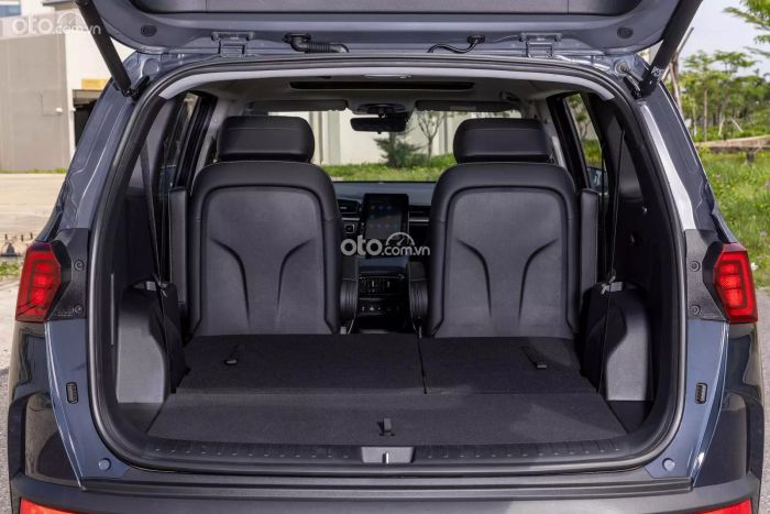 Không chỉ có không gian nội thất rộng rãi, Hyundai Custin còn có không gian lưu trữ linh hoạt với dung tích lớn, đạt 261 lít khi sử dụng 3 hàng ghế, 707 lít khi gập hàng ghế thứ 3 và lên tới 1.223 lít khi gập 2 hàng ghế sau.