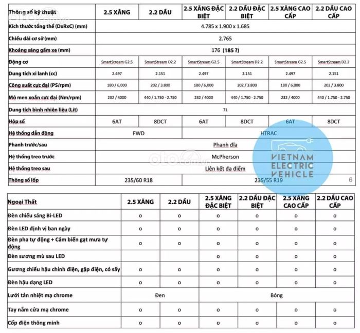 | Hyundai Santa Fe 2.5 Xăng Tiêu chuẩn | 1.029 |