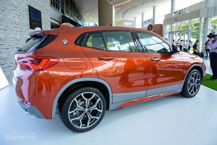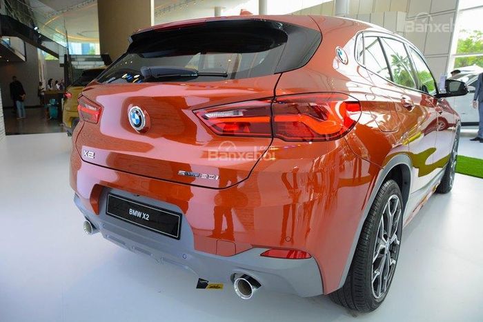 Điểm đặc biệt của BMW X2 sDrive20i và BMW X2 sDrive18i là thiết kế độc đáo của cản trước và mâm xe. Xe sDrive20i đi kèm với 2 ống xả đôi, trong khi đó, sDrive18i chỉ có 1 ống xả đơn.