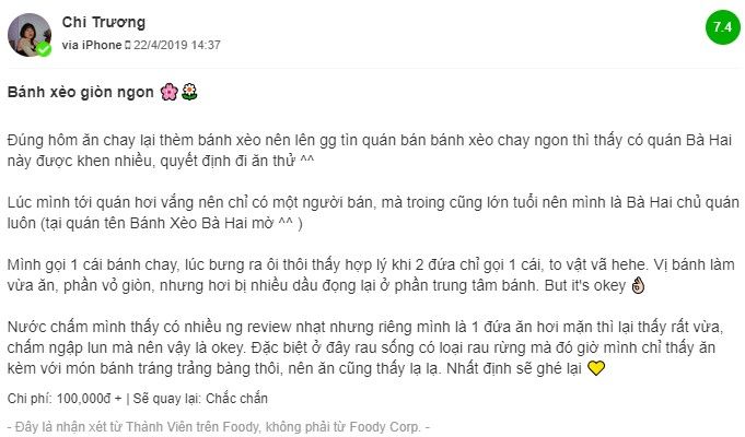 5. Cảm nhận của thực khách về Bà Hai