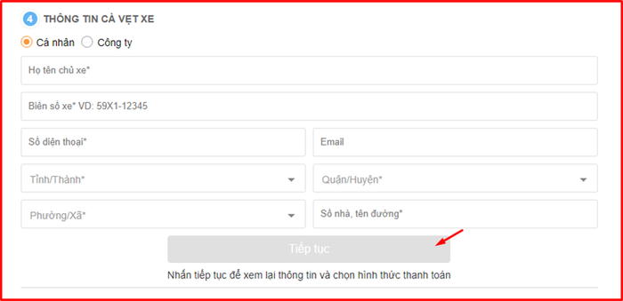 Bước 3: Nhập thông tin cá nhân bao gồm biển số xe, họ tên, địa chỉ nhà, số điện thoại liên hệ