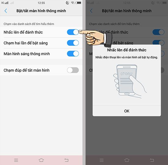 Bước 3: Bật chức năng 'Nhấc lên để đánh thức'.