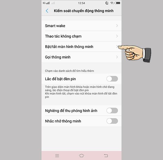 Bước 2: Chọn tùy chọn 'Bật/tắt màn hình thông minh'.