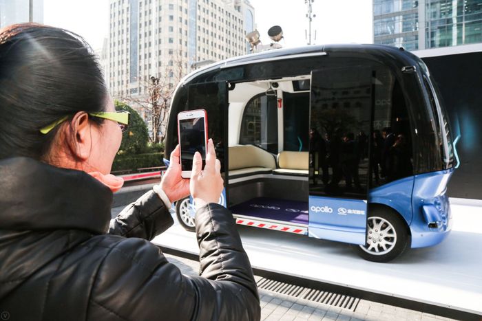 Thường dày với khói bụi, không khí Bắc Kinh trong lành và trong trẻo vào ngày diễn ra hội nghị công nghệ của Baidu. Mọi người đứng ngoài trung tâm hội nghị trung tâm thành phố, còn được biết đến với tên gọi The China World Summit Wing và Kerry Hotel, để chiêm ngưỡng dự án quan trọng nhất của công ty. Ở đó, ở bãi đậu xe chỉ vài bước chân từ đống xe đạp chia sẻ màu cam, là một chiếc xe buýt nhỏ giống như một ổ đĩa, gần như bằng chiều dài của nó. Nó được bao quanh bởi một dây đỏ, và một nhân viên bảo vệ ngăn người ta đến gần quá. Chiếc xe buýt là chiếc đầu tiên trong số nhiều phương tiện sẽ sớm tự di chuyển qua Trung Quốc mà không cần con người điều khiển. Do King Long, nhà sản xuất Trung Quốc và Baidu chung tay xây dựng, chiếc xe buýt sẽ bắt đầu chở hành khách trên các tuyến đường ngắn, được chỉ định vào giữa năm sau. Nó được trang bị, như logo ở dưới đáy của xe cho biết, bởi Apollo.