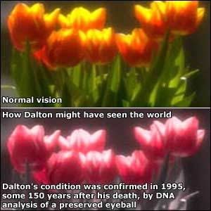 Dalton bắt đầu cảm thấy nghi ngờ về vấn đề này và bắt đầu nghiên cứu về việc nhận dạng màu sắc của con người.