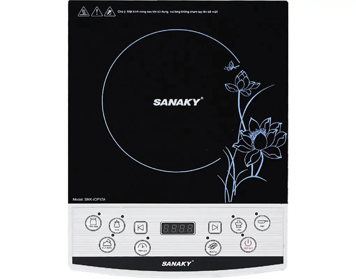 Thiết kế nhỏ gọn, mặt kính siêu bền và khả năng chịu lực, chịu nhiệt tốt là những ưu điểm mà bếp từ đơn Saijo Denki SD-1900 2000W đem lại. Tính năng hẹn giờ tối đa 24 giờ và khóa an toàn cho trẻ em làm cho việc sử dụng bếp trở nên thuận tiện và an tâm. Công suất hoạt động 2000W mạnh mẽ giúp tiết kiệm thời gian nấu ăn.3.3 Bếp Điện Đơn Sanaky SNK-ICP17A 1800W - Sang Trọng và Tiện Lợi