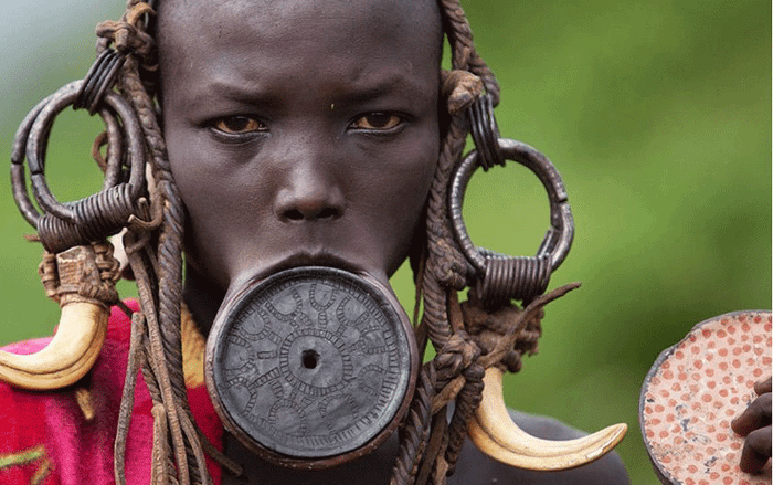 Người Mursi thực hiện nghi lễ lồng đĩa môi cho phụ nữ từ tuổi 13. Họ đeo đĩa môi lớn dần lên để đánh dấu sự chuyển từ cô gái trở thành người phụ nữ. Quá trình này tiếp tục với những chiếc đĩa lớn hơn qua từng giai đoạn.
