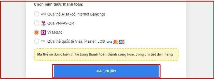 Bước 5: Chọn phương thức thanh toán và nhấn xác nhận.