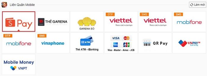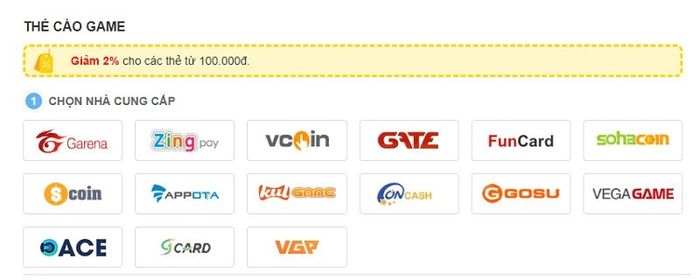 Bước 2: Bạn lựa chọn nhà cung cấp (Garena, ZingPay, FunCard,...).