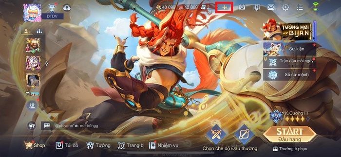 Thảo luận Bước 1: Chọn biểu tượng nạp tại giao diện chính của game.