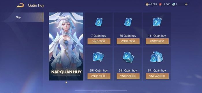 Vào game > Chọn biểu tượng tượng trưng cho nạp > Chọn mức muốn nạp > Xác nhận thanh toán