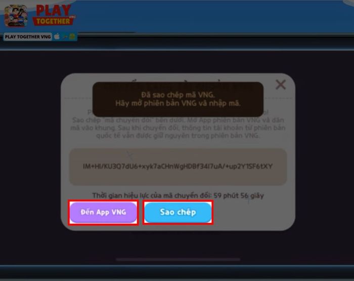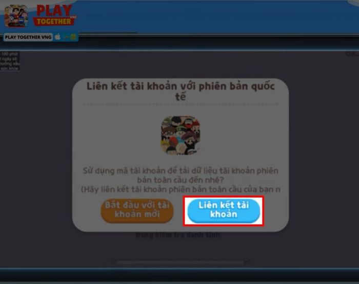 Bước 4: Khởi động game Play Together phiên bản VNG và sẽ nhận thông báo liên kết tài khoản. Chọn vào Liên kết tài khoản, dán mã chuyển đổi vào ô trên rồi nhấn OK.