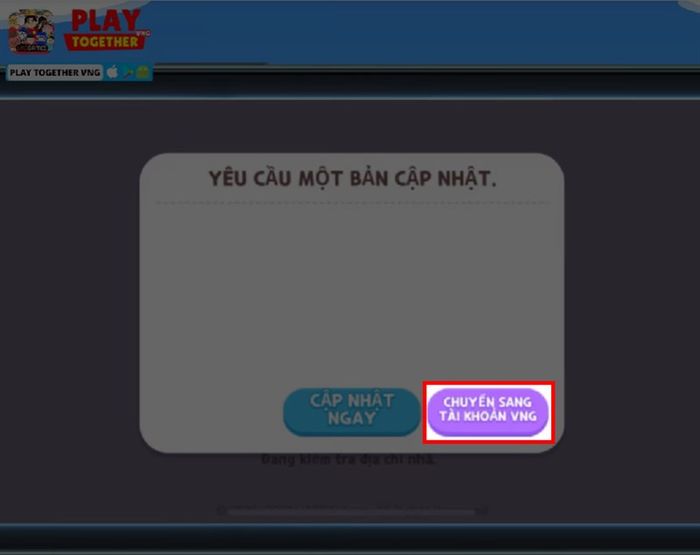 Bước 2: Sau khi tải xong, truy cập ngay vào game và chờ khởi động. Khi thấy thông báo cập nhật, hãy nhấn Chuyển sang tài khoản VNG ngay.