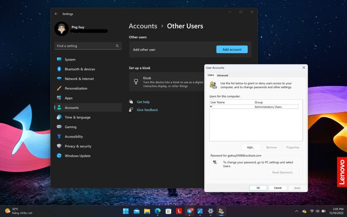 Sau đó, bạn chỉ cần chọn tài khoản người dùng muốn xóa, tiếp theo chọn Xóa Tài khoản. Một cửa sổ mới sẽ hiện ra, hỏi liệu bạn muốn xóa toàn bộ các tệp dữ liệu cá nhân hay không. Sau khi xác nhận, tài khoản người dùng sẽ biến mất.Làm thế nào để gỡ bỏ tài khoản người dùng từ Cài đặt