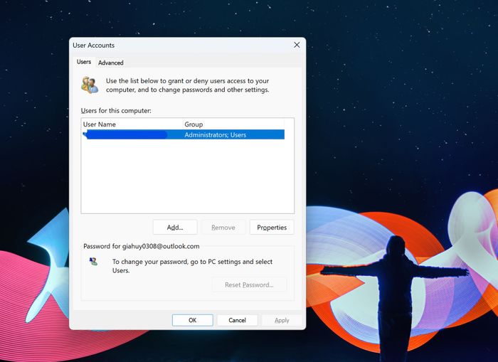 - Mở hộp thoại Run -> gõ Netplwiz rồi Enter.