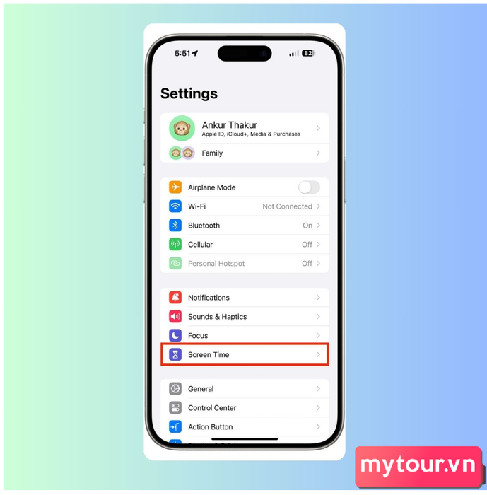 Bước 1: Mở ứng dụng Cài đặt và chọn Thời gian sử dụng (Screen time).