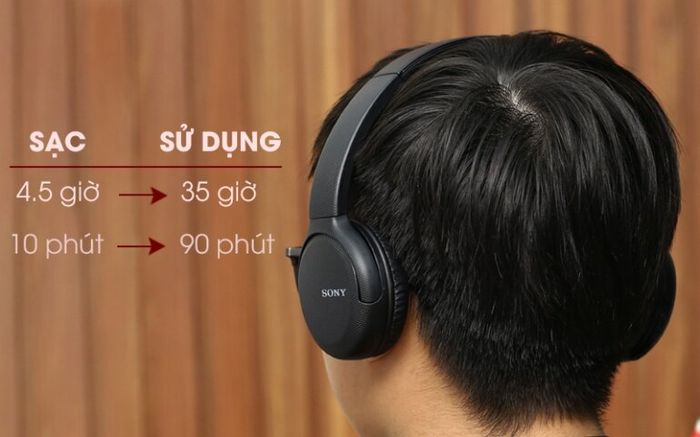 Tai nghe này đảm bảo thời lượng pin lên đến 35 giờ nghe nhạc liên tục. Tránh tình trạng hết pin đột ngột khi bạn đang thưởng thức âm nhạc. Thời gian sạc chỉ 4-5 tiếng, và 10 phút sạc có thể sử dụng liên tục 1 tiếng rưỡi.
