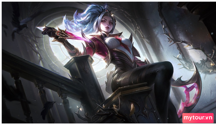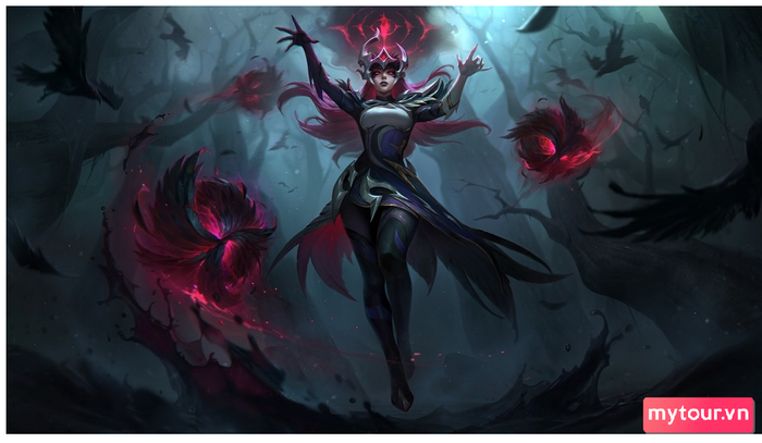 Tông màu chủ đạo vẫn là tím trong bộ trang phục mới, nhưng Elise và Syndra lại mang nét độc đáo với chấm phá màu đỏ thẫm pha lê, làm cho chúng ta liên tưởng đến skin Huyết Nguyệt. Riot đã tinh tế kết hợp yếu tố cốt truyện với hiệu ứng kĩ năng ấn tượng của từng tướng. Đặc biệt, hiệu ứng kĩ năng của Akali Tiên Hắc Ám hứa hẹn sẽ làm say đắm các fan.
